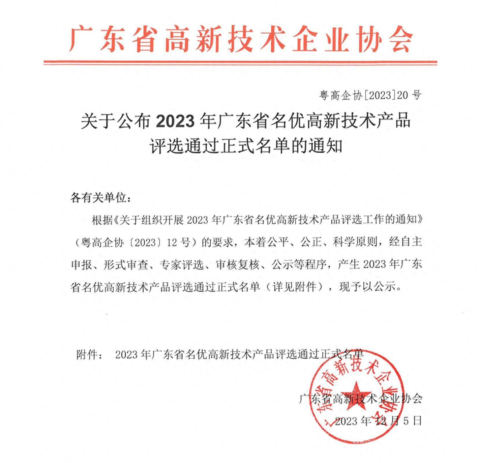我司一產品獲評定為廣東省名優高新技術產品